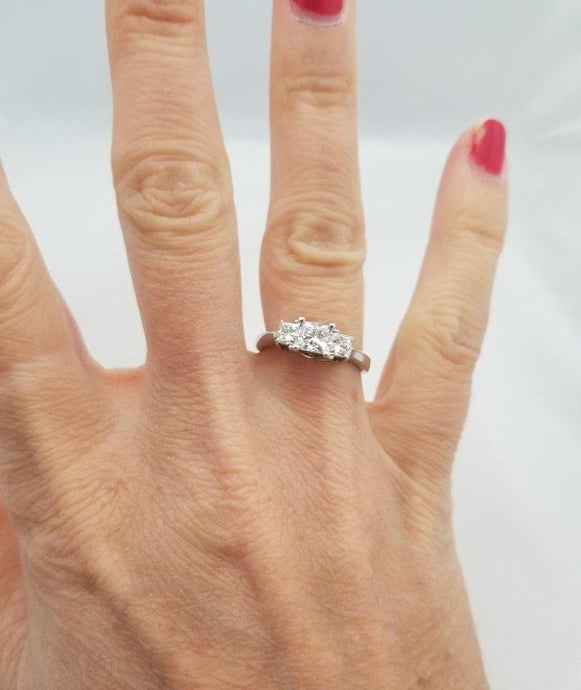 14k WHITE GOLD 1.00ct PRINCESS CUT DIAMOND THREE STONE ENGAGEMENT RING
