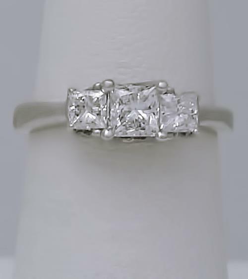 14k White Gold 1.00ct Princess Cut Diamond Three Stone Engagement Ring