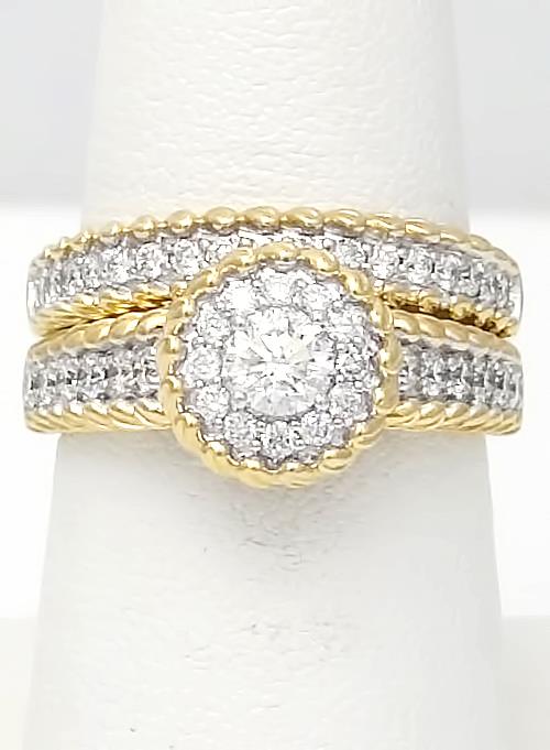 14k Yellow Gold 1.00ct Round Diamond Halo Engagement Wedding Ring Set
