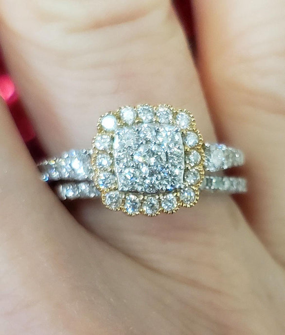 14k White Yellow Gold Diamond Halo 1.00ct Square Engagement Wedding Ring Set