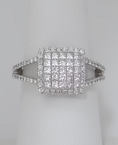 750 18k White Gold .98cts Diamond Princess Square Halo Ring
