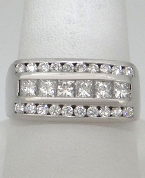 LADIES 14k WHITE GOLD 1.00ct ROUND PRINCESS CUT DIAMOND 3 THREE ROW RING 9 10mm