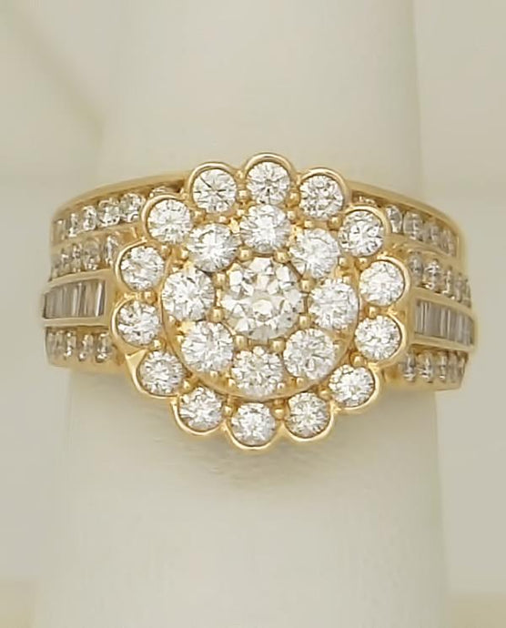 14k Yellow Gold 2.00ct Round Diamond Flower Halo Duo Wedding Engagement Ring