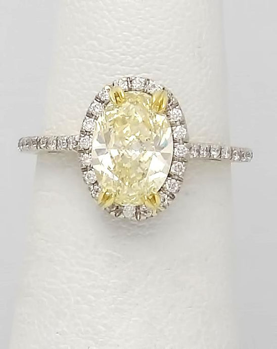GIA 18k White Gold 2.00ct Oval Yellow Round White Diamond Halo Engagement Ring