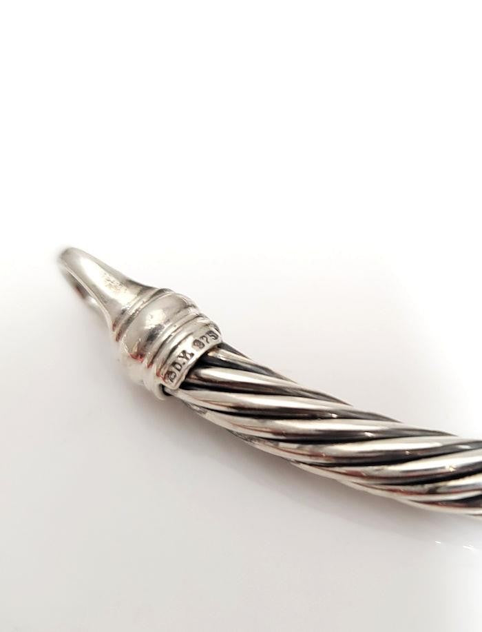 This piece is hallmarked DY 925 585, confirming authentic David Yurman craftsmanship and sterling silver with 14k gold elements. Condition is excellent, with minimal surface wear consistent with light use and no major flaws.