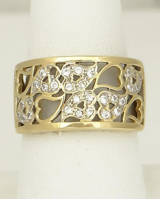 LADIES 18k YELLOW GOLD 1/3ct CUBIC ZIRCONIA FILIGREE HEART WIDE BAND