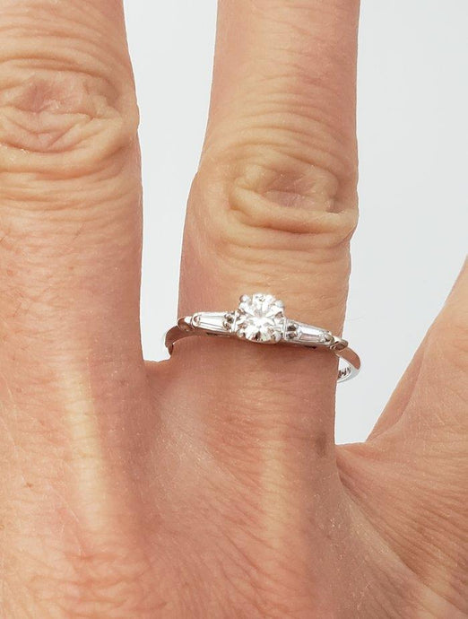 14k White Gold .38ct T.W. Round & Baguette Diamond Three Stone Engagement Ring
