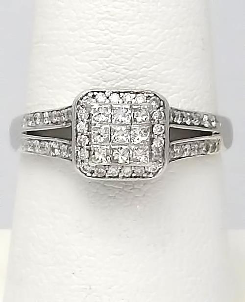 Composite Halo Diamond Accent Square Promise Ring 14K White Gold
