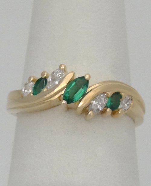 LADIES 14K YELLOW GOLD MARQUISE 1/4ct GREEN TOURMALINE DIAMOND RING