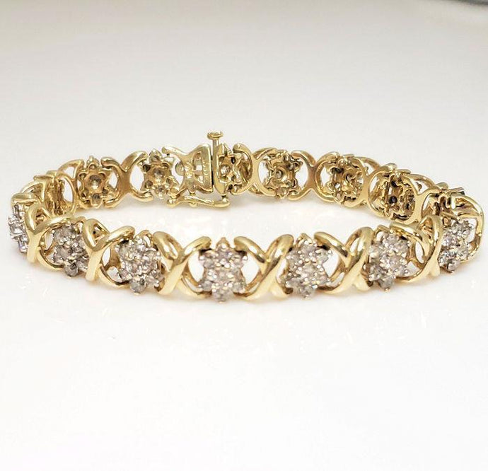5.00ct Diamond Star Flower Tennis Bracelet in 14k Yellow Gold