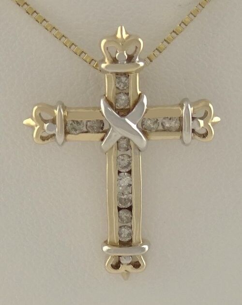Ladies 10k Yellow White Gold 1/3ct Round Diamond Cross Slide Pendant Charm 1"