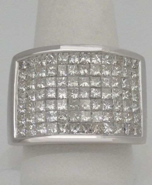 MENS 14K WHITE GOLD 5.00ct SQUARE DIAMOND PAVE WIDE BAND HEAVY RING