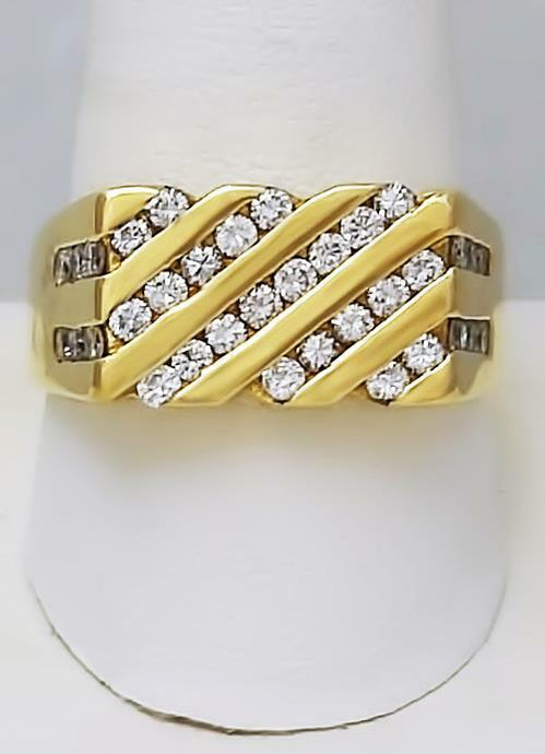 14k YELLOW GOLD RECTANGLE FIVE ROW CHANNEL SET 3/4ct ROUND DIAMOND RING