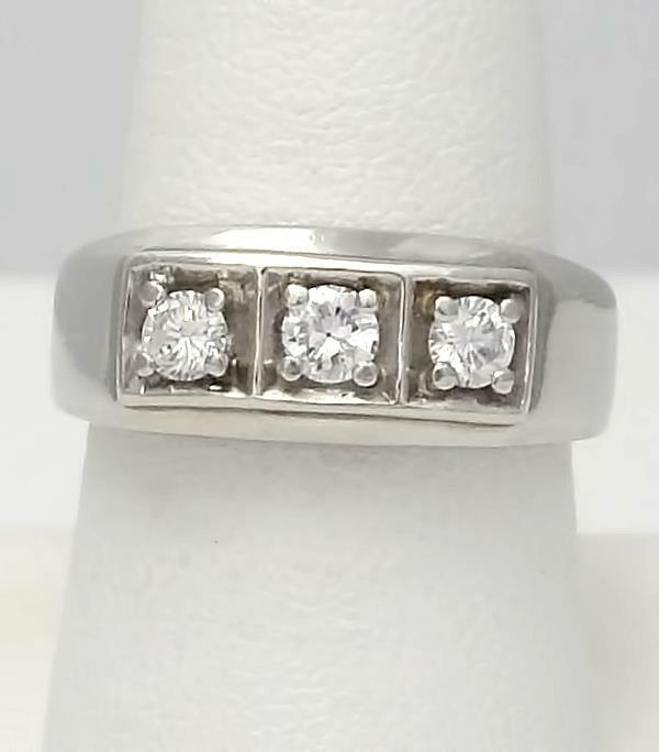 MENS 950 PLATINUM 1/2ct VS2-SI1 ROUND DIAMOND SOLID HEAVY THREE STONE BAND RING