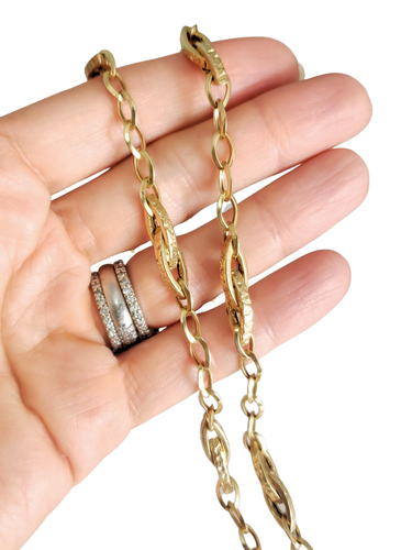 With a fun design, this oval interlinked chain necklace shows your playful side. Fashioned in warm 14K gold, this 6mm-wide hollow style showcases oval-shaped larger etched links with alternating high polished accents. Polished to a bright shine, this 18.0-inch necklace secures with a lobster claw clasp. Will come in a gift box.