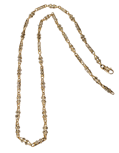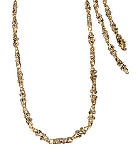 Elevate your elegance with a dazzling statement - our 2.00ct Diamond Custom Fancy Link Solid 10k Gold Chain Necklace, a captivating 25" piece that arrives in a gift box. Crafted from luxurious 10k Yellow Gold and adorned with brilliant diamonds, this exquisite chain, weighing 37.1 grams, offers both opulence and sophistication. Secured with a lobster clasp and hallmarked '10k', it's a true symbol of luxury, promising 100% satisfaction.