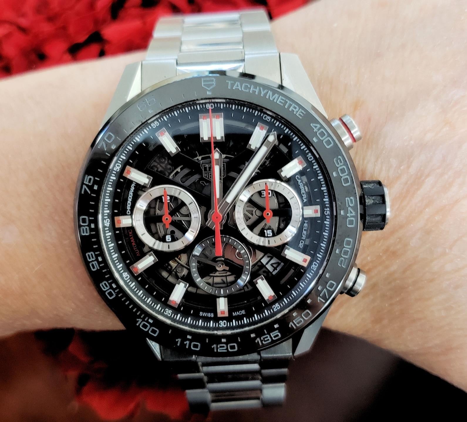 Designed for versatility, this Carrera comes fitted with a stainless steel bracelet secured by a deployment clasp, providing both strength and comfort. The date indicator adds practicality, making this watch ideal for both daily wear and special occasions.