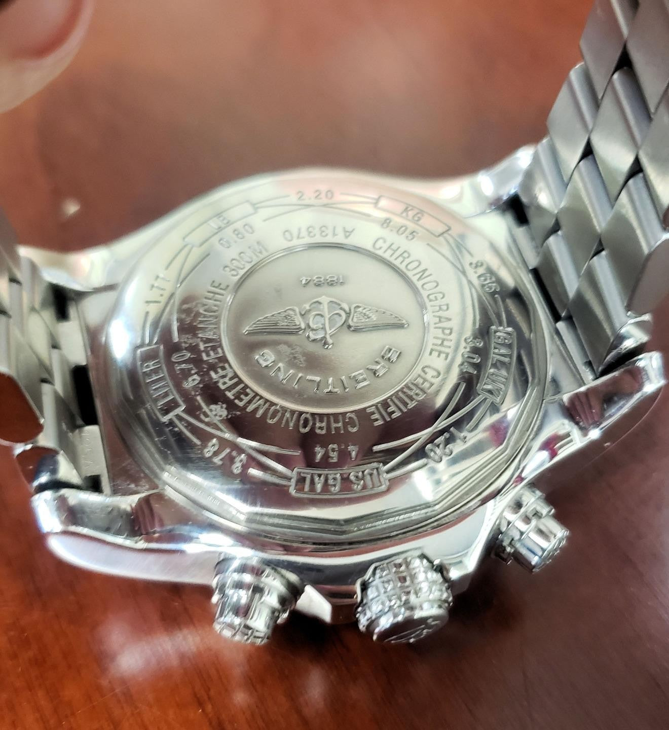 Although pre-owned, this Breitling Super Avenger has been meticulously maintained and remains in excellent working condition. Please note there are some scratches on the watch, consistent with normal wear. These minor imperfections do not detract from its overall presence or performance.