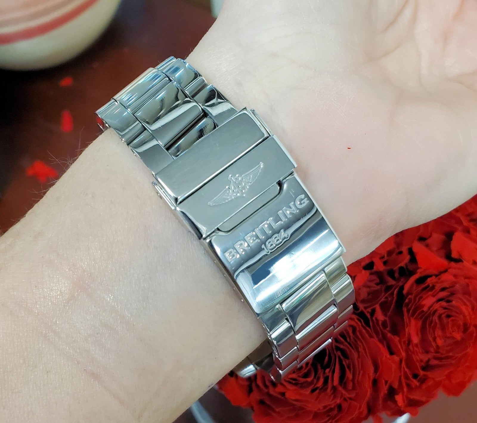 The solid stainless steel bracelet measures 8" in length and can be resized to fit your wrist. The watch weighs substantially on the wrist, offering a strong and confident feel, yet remains balanced and comfortable due to its ergonomic case design.