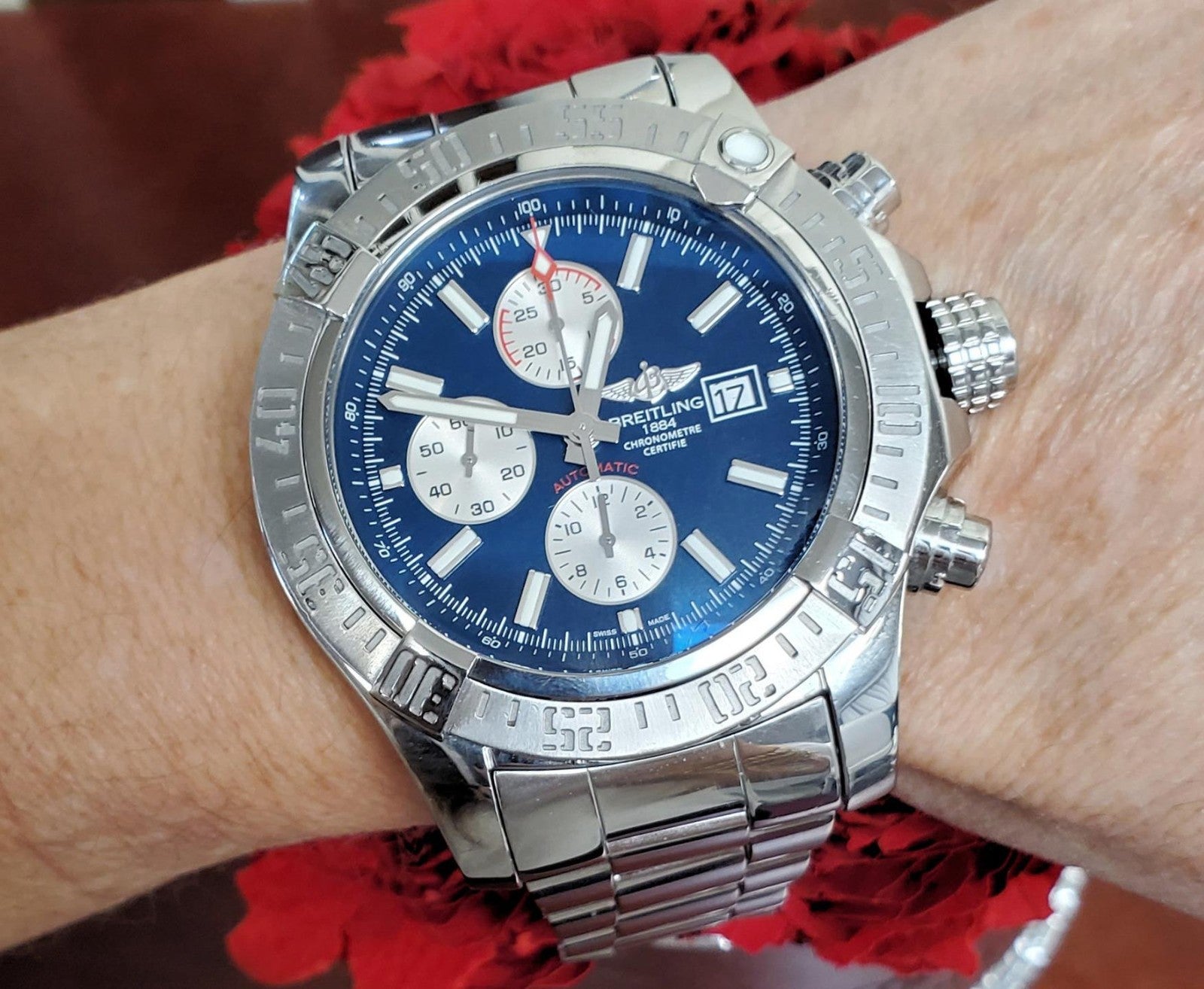 This Super Avenger II is in excellent condition, showing only minor surface scratches from light wear with no major flaws or defects. The dial and crystal are pristine, and the movement runs smoothly and accurately.