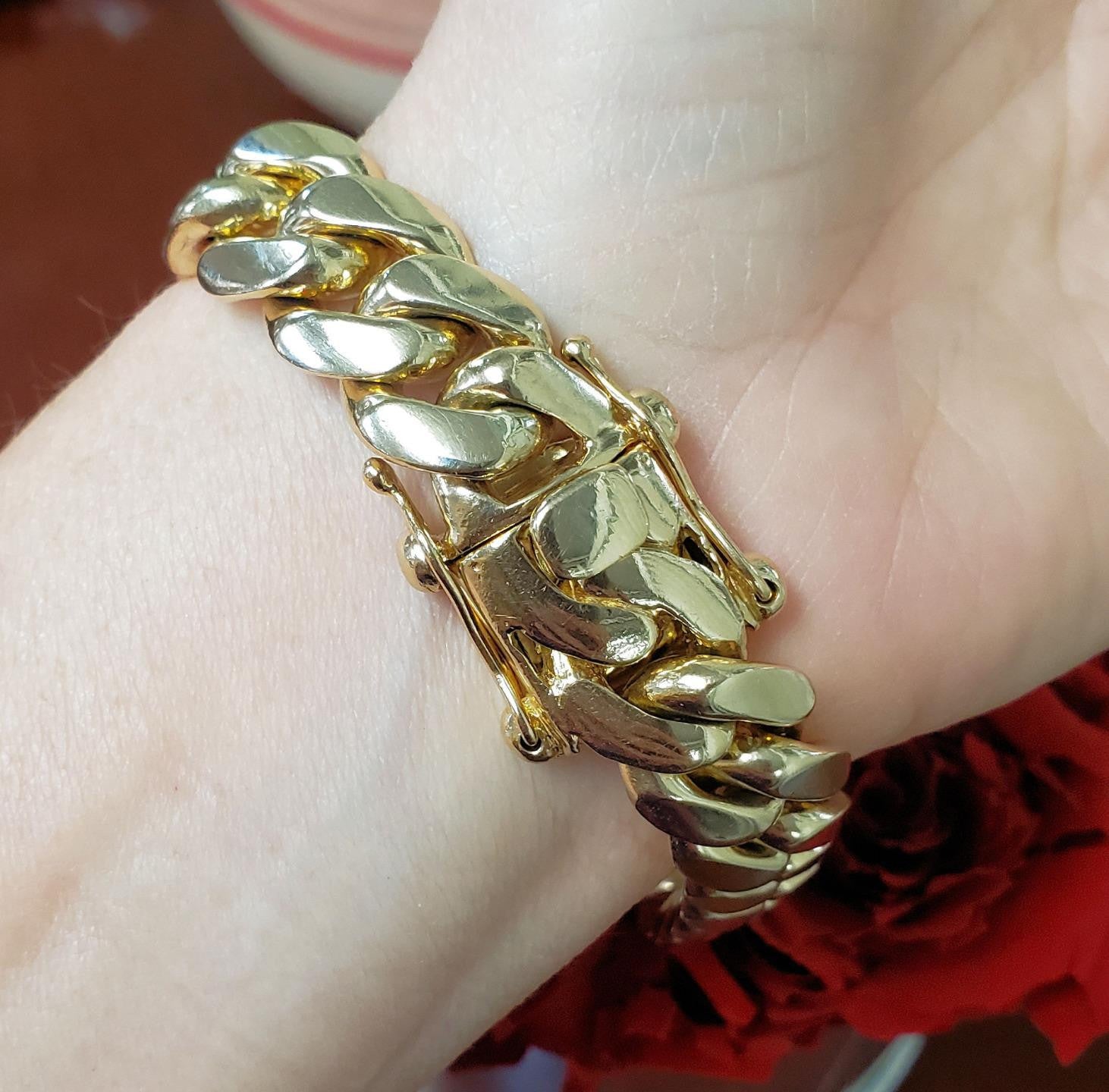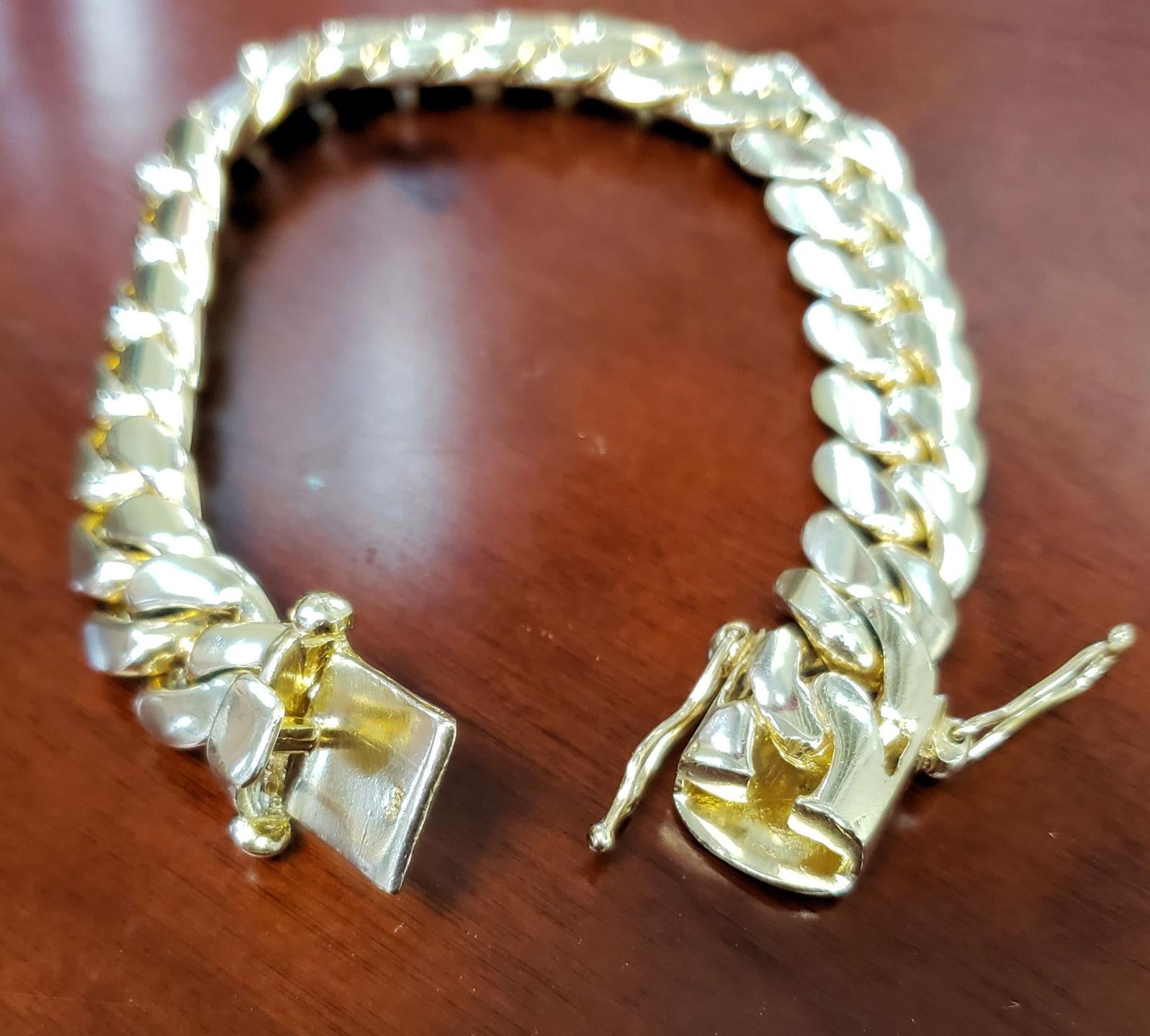 Immerse yourself in the timeless sophistication of our Men's 12k Yellow Gold Cuban Closed Solid Link Bracelet, a true symbol of luxury and refinement.
