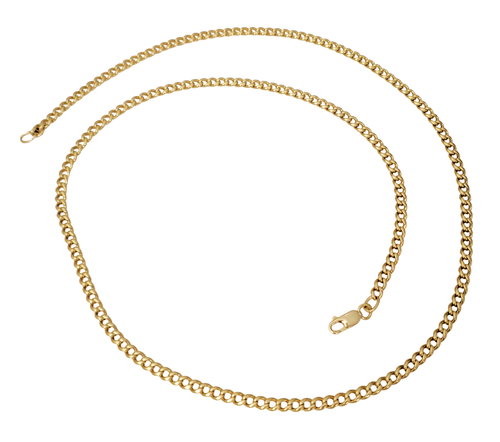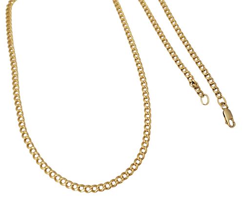 Indulge in the allure of our 14k Yellow Gold 4mm Solid Curb Link Chain Necklace, with a closed length of 25 1/2". This 35.6-gram masterpiece is a testament to timeless elegance and quality, boasting a secure lobster clasp. The chain is hallmarked 585, affirming its authenticity and value. We provide a 100% Satisfaction guarantee, and this exquisite necklace comes complete with a gift box for your convenience. With a mall price of $4,900.00, it's a symbol of luxury and sophistication, making it the perfect addition to your collection.".