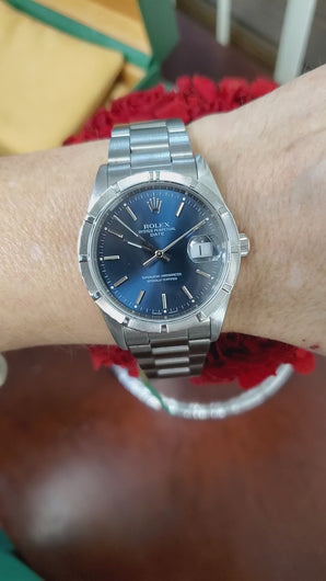 The vibrant blue stick dial offers excellent legibility with luminous hour markers and hands, complemented by the classic date display at 3 o’clock magnified by the cyclops lens. The sapphire crystal provides exceptional clarity and durability. Powered by Rolex’s automatic movement, this model delivers dependable accuracy and smooth, consistent performance, making it ideal for everyday wear or rotation within a collection.
