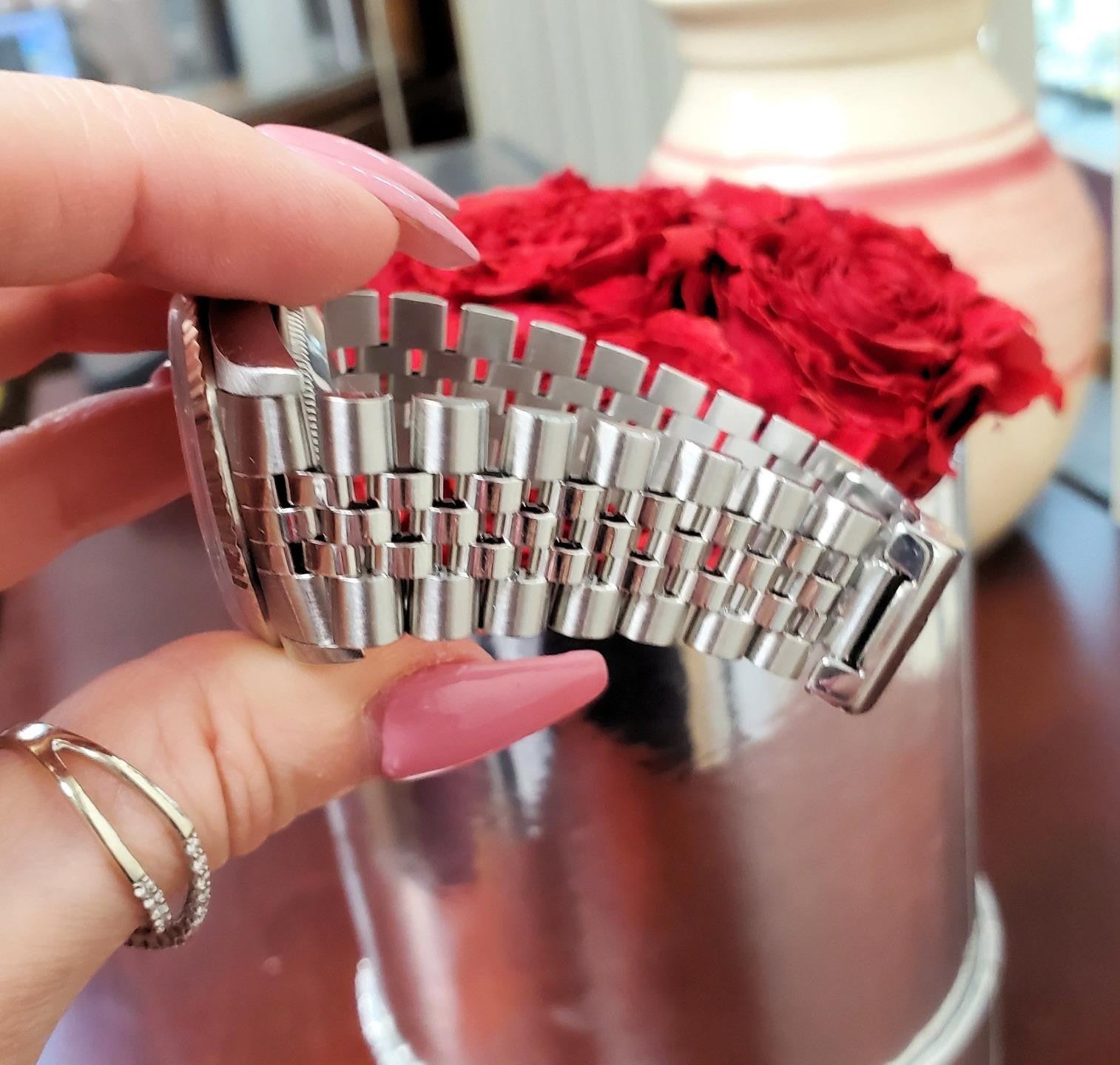 Inside the watch is Rolex’s automatic self-winding movement, known for long-term reliability and precision. The 36mm case size offers a balanced wrist presence that has remained one of Rolex’s most enduring designs. The Jubilee bracelet measures approximately 7 1/2 inches in length and exhibits normal stretch consistent with age and gentle use, while remaining comfortable and secure on the wrist. The bracelet can be resized to fit as needed.