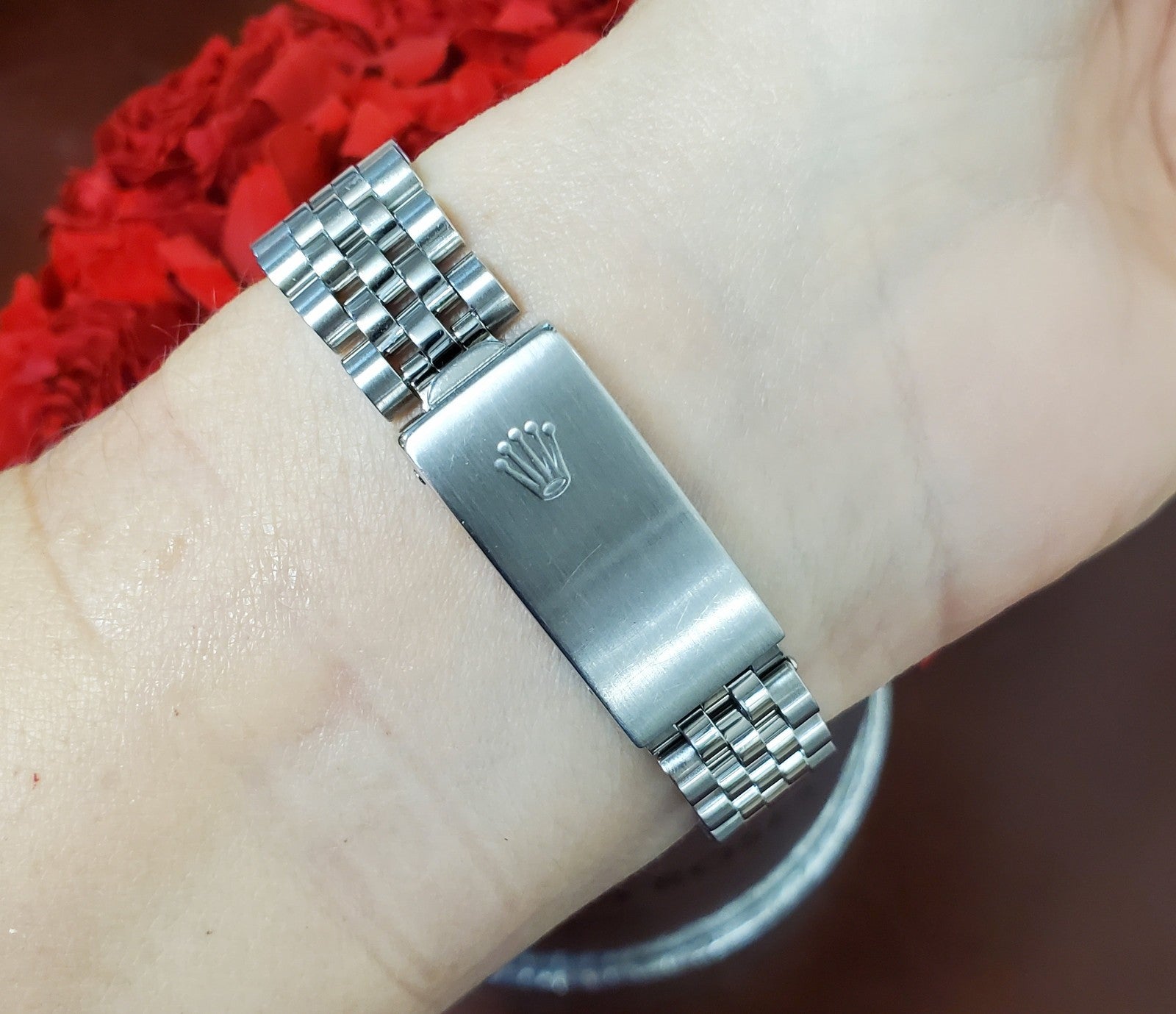 Powered by Rolex’s automatic movement, this watch delivers exceptional accuracy and smooth performance with the quickset date feature. Produced in 1988, it remains in excellent condition overall, showing only minimal signs of gentle wear with no major flaws or defects. The stainless steel Jubilee bracelet measures 6 1/2 inches in length and can be resized to ensure a perfect fit.