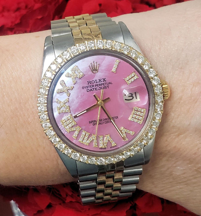 36mm Rolex Datejust Two Tone Gold Steel Jubilee Pink MOP Diamond Roman 1601