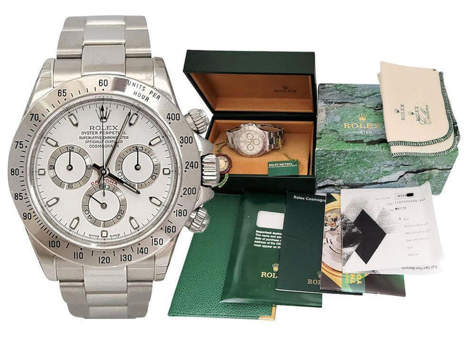 NOS 40mm Rolex Daytona Stainless Steel White Dial Watch 116520
