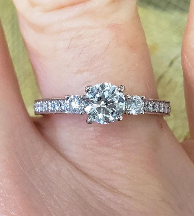 Rayalty 750 18k White Gold .81ct Round Diamond 3 Stone Engagement Ring