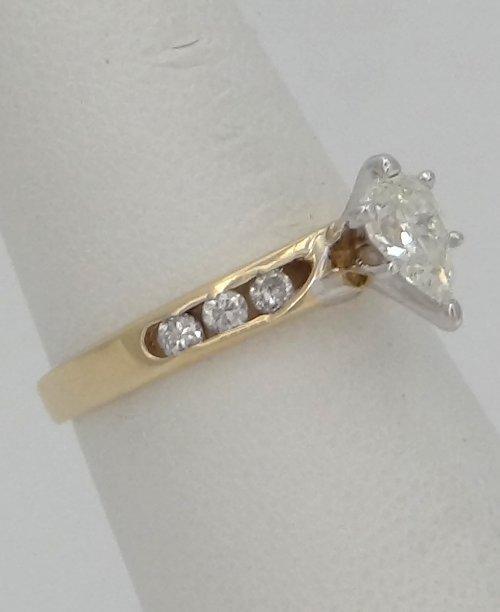 Ladies 14k Yellow Gold .56ct Pear Shaped Diamond Ring with Accents.